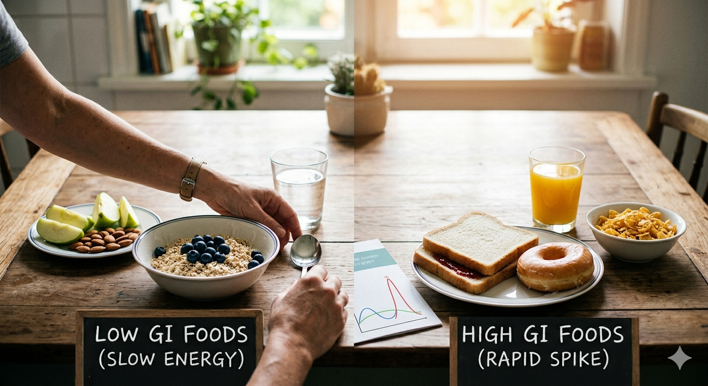Low GI foods release energy slowly, helping maintain stable glucose levels throughout the day. This prevents sudden spikes and crashes that can lead to fatigue and irritability.